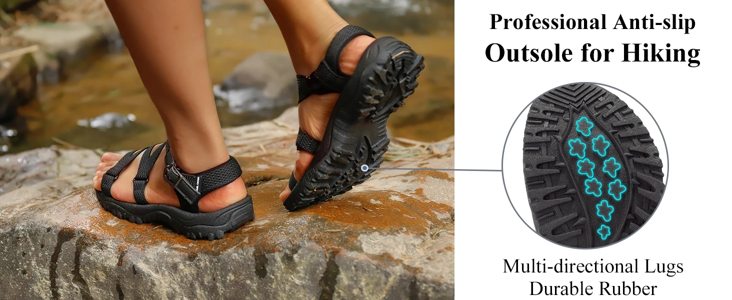 4. مزدوج مانع للانزلاق: توفر حلقة إصبع القدم وسرير قدم مانع للانزلاق من صندل دعم القوس للنساء تحكماً إضافياً في الماء ، وتوفر العروات متعددة الاتجاهات قبضة فائقة في تسلق الجبال ، الرطب ، الشاطئ ، الموحلة ، وغيرها من التضاريس في الهواء الطلق.