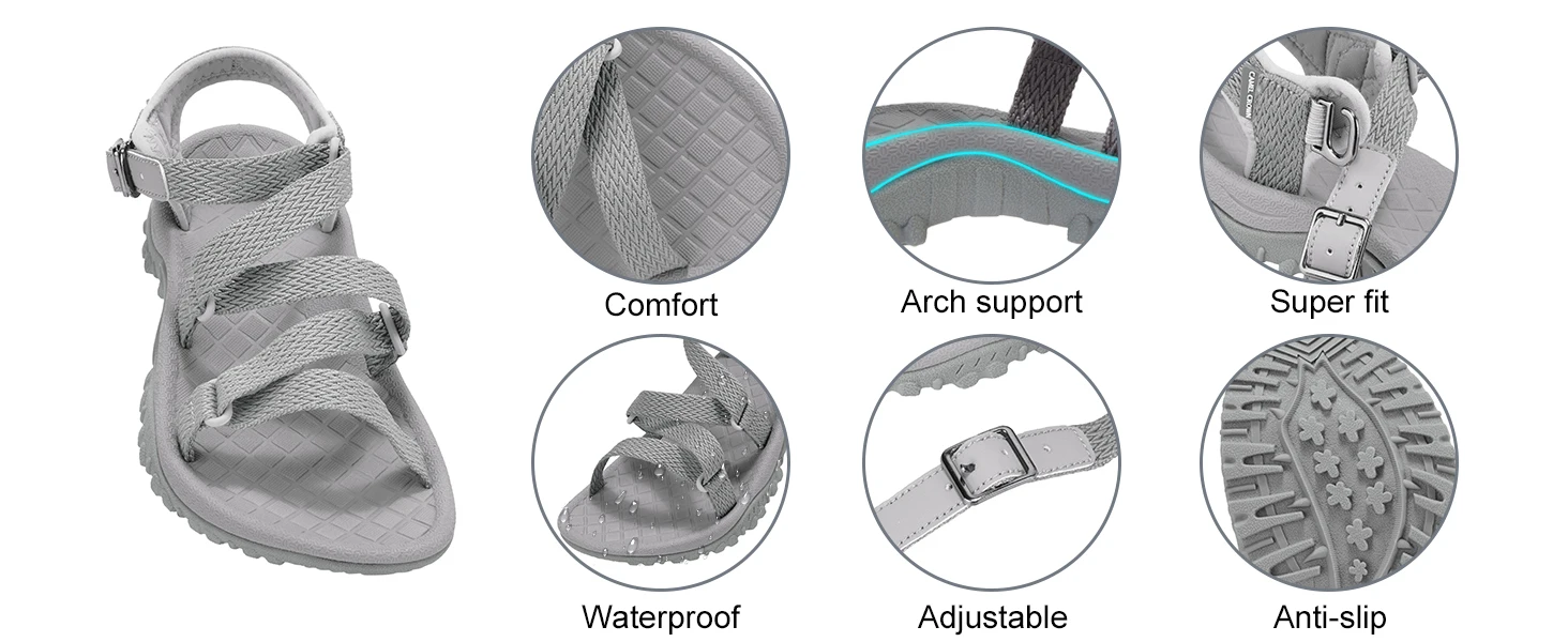 5. خفيف الوزن: مصنوع من الأقمشة الناعمة وباطن توسيد خفيف الوزن ، توفر هذه الصنادل الرياضية للنساء في الهواء الطلق أقصى درجات الراحة لقدميك وتقليل إجهاد المشي.